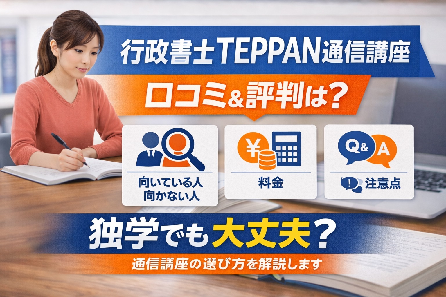 本記事では、行政書士TEPPAN通信講座の口コミや特徴を整理し、