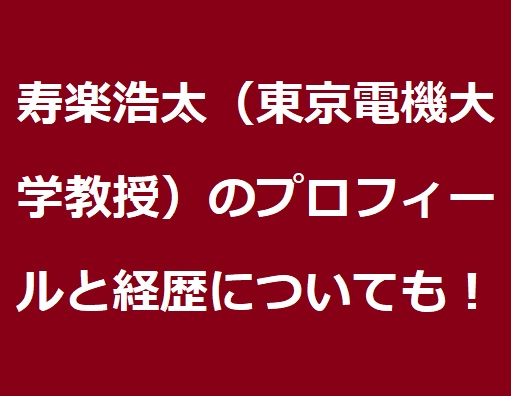 寿楽浩太(東京電機大学教授)のプロフィールと経歴についても!