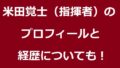 米田覚士(指揮者)のプロフィールと経歴等の紹介