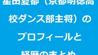 スポーツ 星田夏都(京都明徳高校ダンス部主将)のプロフィールと経歴のまとめ 京都明徳高校ダンス部主将・星田夏都さんのプロフィールや経歴を分かりやすくまとめました。国際大会優勝経験を持つ強豪チームを率いる高校生ダンサーとしての歩みや、「ミラモンGOLD」出演で注目される活躍を紹介します。 2026.02.14 スポーツ