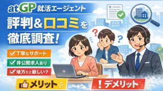 お役立ち情報 atGP 就活エージェントの口コミ・評判は?デメリットや注意点も! atGP就活エージェントの評判・口コミを徹底解説。良い口コミ・悪い口コミ、メリット・デメリット、向いている人・向いていない人までわかりやすく紹介します。 2026.02.11 お役立ち情報